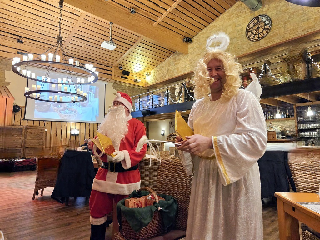 Zu unserer aller Überraschung kamen der Weihnachtsmann und das Christkind in Gestalt von Gerd Geuyen und Georg Quinders, um die Powerfrauen durch die Bank weg zu loben.